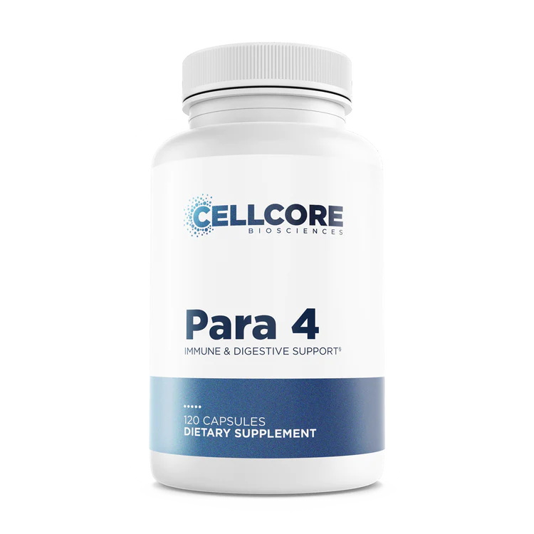 Para 4 is a blend of 11 potent herbs known for supporting digestion, detoxification, and immunity, including celery seed, cordyceps, holy basil, horse tail, noni root, and sarsaparilla. Together, these herbs help promote a balanced gut microbiome and red blood cell production, which supports energy production and balances oxygen levels in the body.